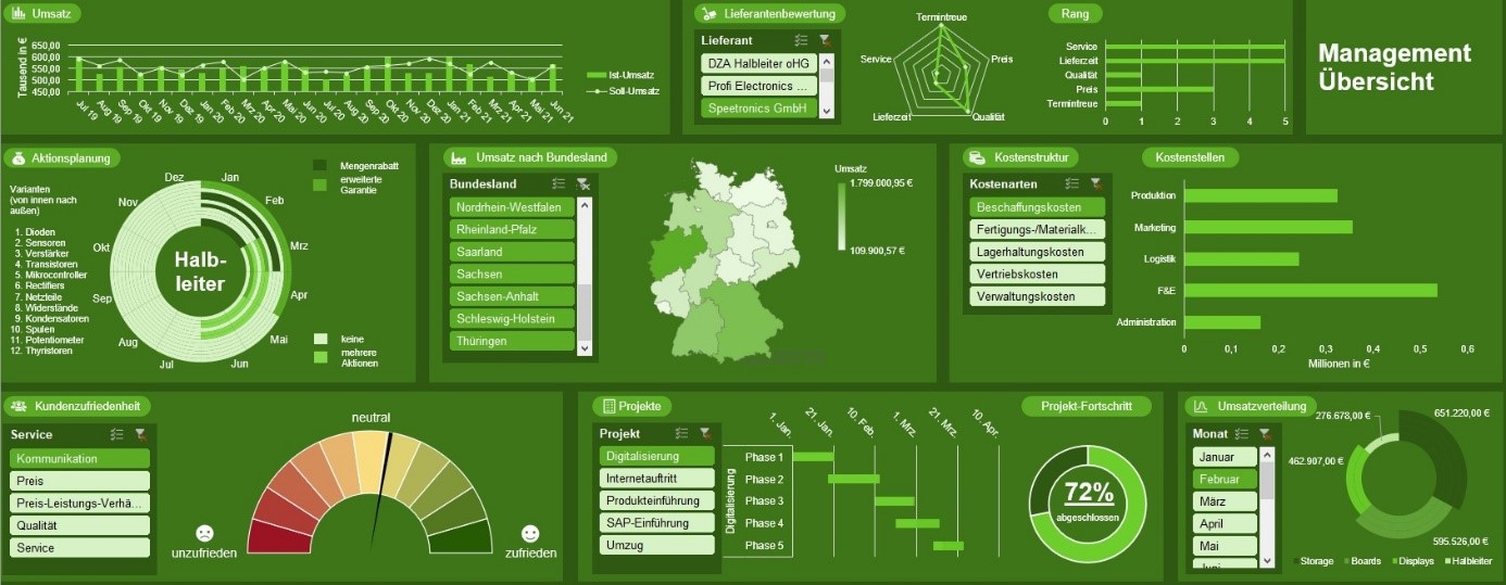 - Dashboard-Design & Visualisierung: Interaktive Berichte in Ihrem Corporate Design.